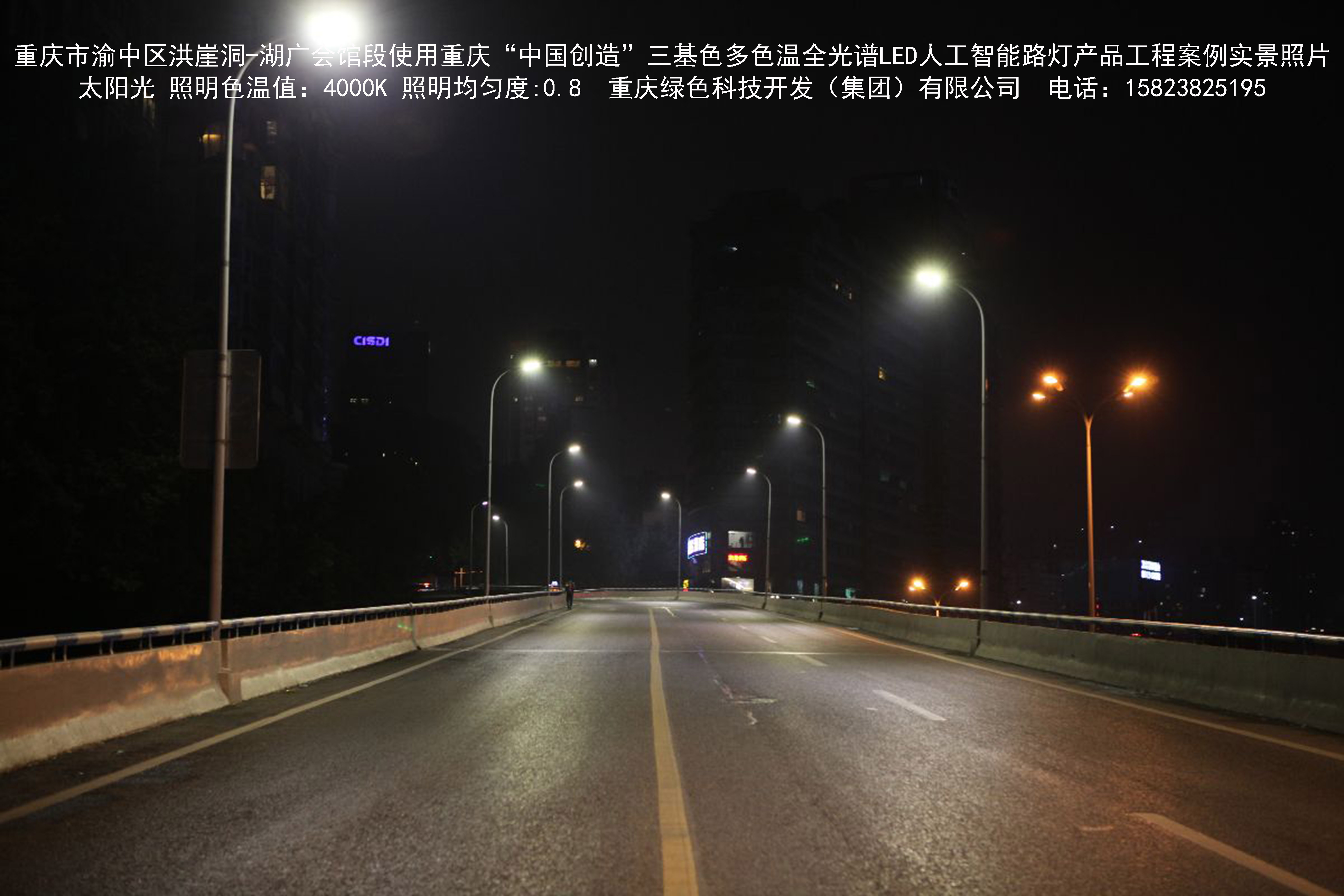 2018年12月,重慶市城市照明管理局使用我司自主研發(fā)制造的重慶“中國創(chuàng)造”三基色多色溫全光譜LED人工智能路燈系列產(chǎn)品,實施了渝中區(qū)市政設(shè)施品質(zhì)提升工程。該工程已全面竣工。工程實施后,極大地提高了城市照明清晰度、燈光均勻度、舒適度。通過智能終端實現(xiàn)單燈感知、線纜防盜報警,與原高壓鈉燈相比,節(jié)能率60%以上,有效解決了關(guān)閉控制回路或間隔關(guān)燈方式造成的照明暗區(qū),確保行人和車輛通行的安全,實現(xiàn)城市路燈照明系統(tǒng)的智能化管理,推進了智慧城市建設(shè)。